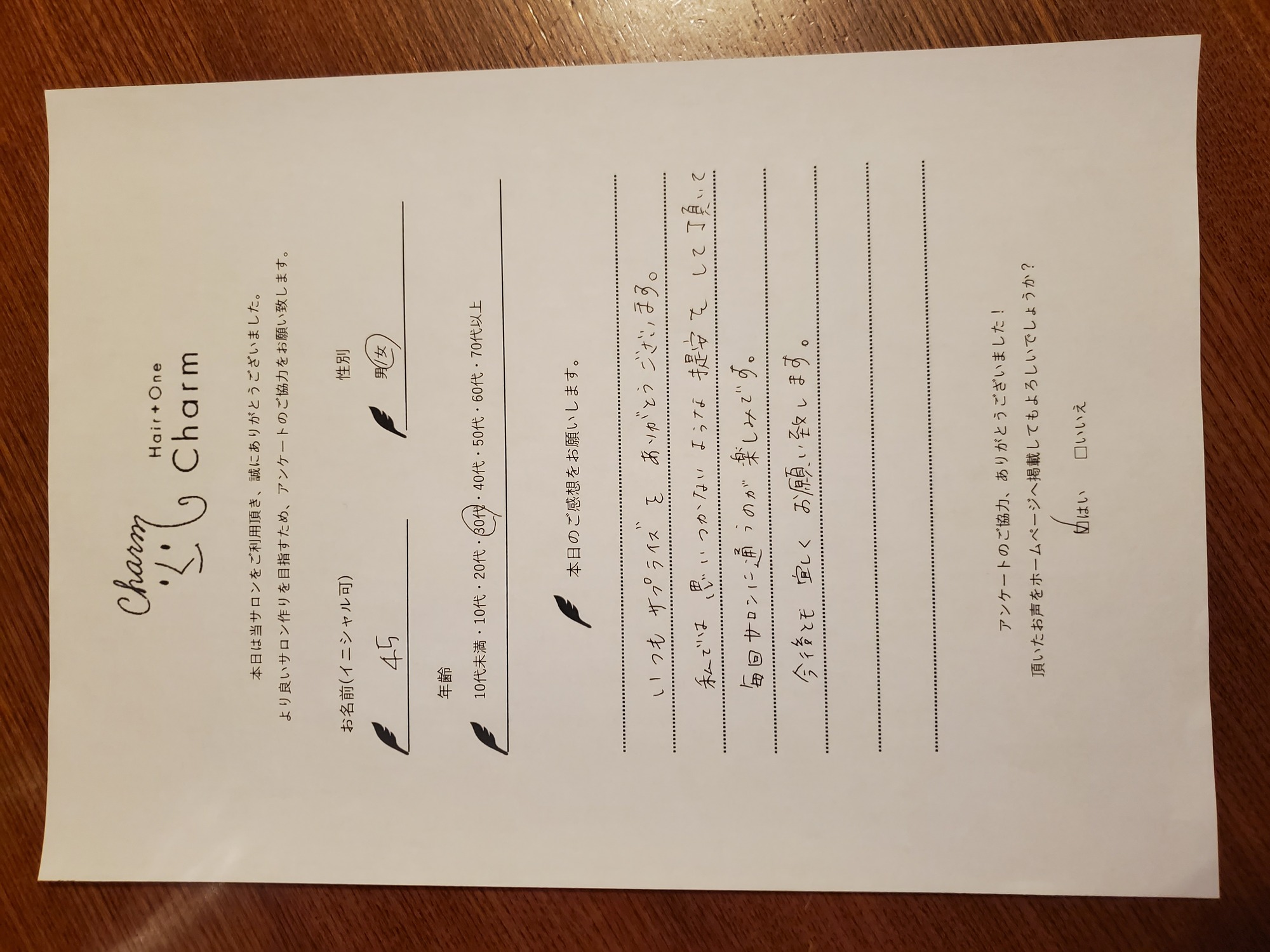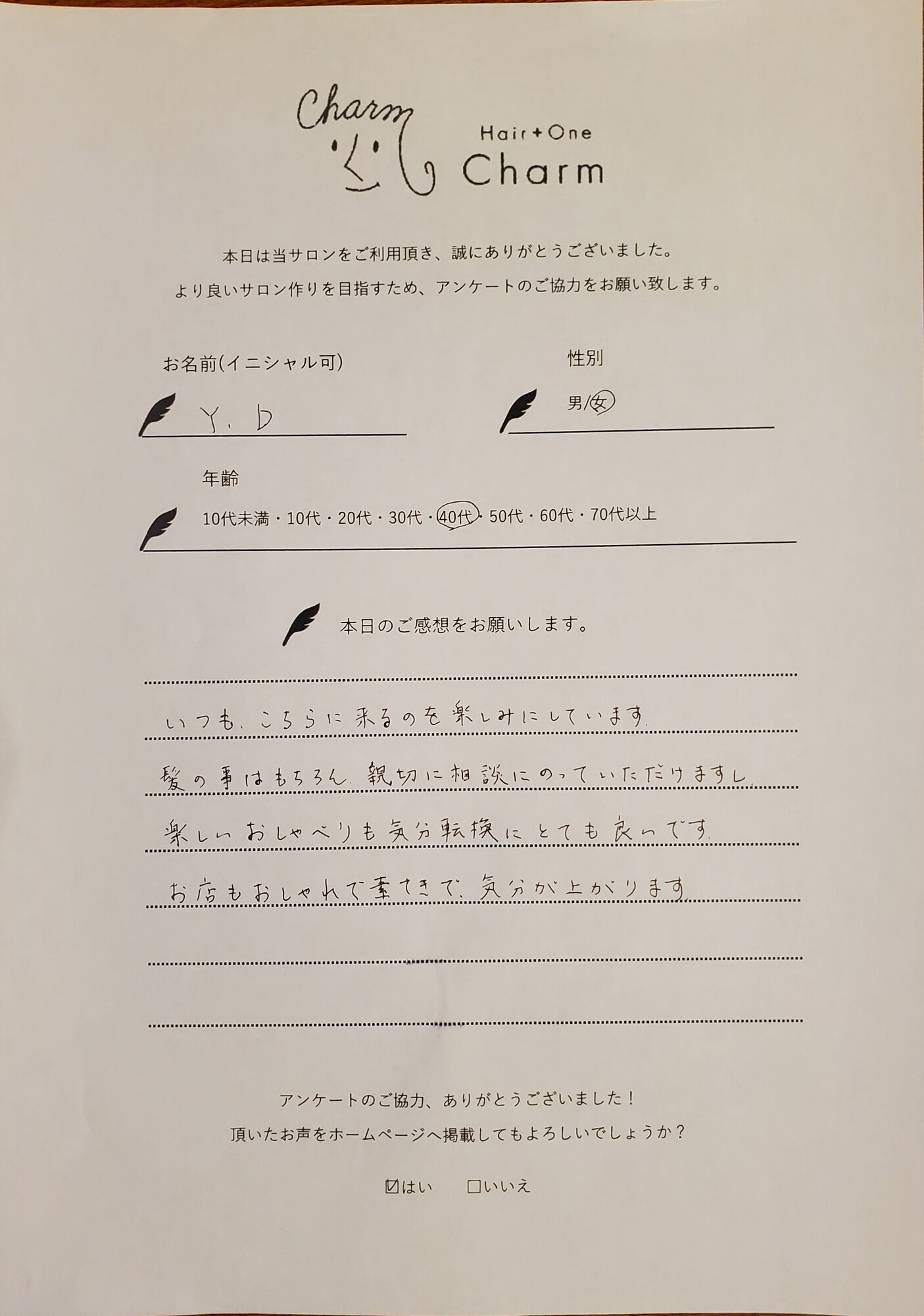 次回ご来店も楽しみにしております。